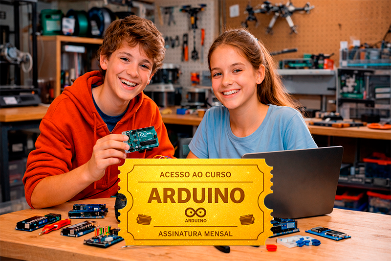 A Assinatura Mensal – Perfil Jovens oferece acesso completo ao curso de Arduino e Robótica para jovens, com conteúdo didático, lúdico e progressivo, desenvolvido para estimular o raciocínio lógico, a criatividade e o interesse pela tecnologia desde cedo.